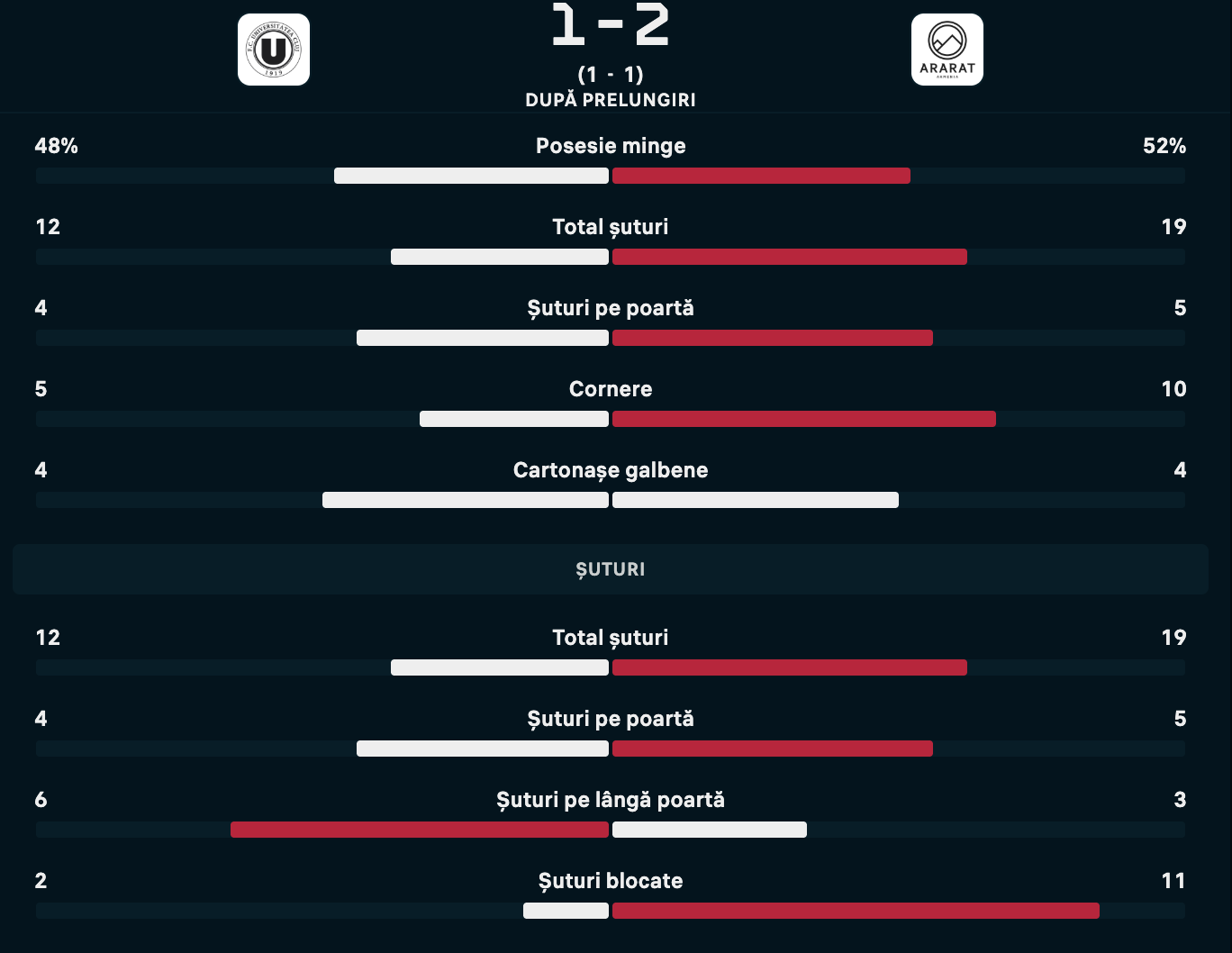 U Cluj a fost fix ca-n bancurile de la Radio Erevan. Se poate califica echipa lui Sabău mai departe? Se poate, dar nu atunci când joacă împotriva lui Ararat. Nici măcar nume de echipă de fotbal n-au ăștia. Și ce bine începuse totul. Un stadion plin la Sibiu și un gol venit repede, în minutul 13. Jovo Lukic le arăta armenilor cine e șeful, după o centrare ideală de la Iulian Cristea. De 53 de ani așteptau fanii Universității momentul ăsta, iar adversarul părea ideal pentru ca oamenii lui Sabău să-și intre-n mână. Scenariul se putea repeta 14 minute mai târziu, în aceeași formulă, doar că Lukic n-a mai nimerit plasa. Primul semnal de alarmă vine spre finalul primei părți, când oaspeții egalează, doar că reușita e anulată. Cum nu există VAR rămâne 1-0. Nu de alta, dar reușita armenilor a fost perfect corectă. Al doilea avertisment apare și el, tot până-n pauză. Ambartsumyan a tras pe lângă dintr-o poziție aproape perfectă.