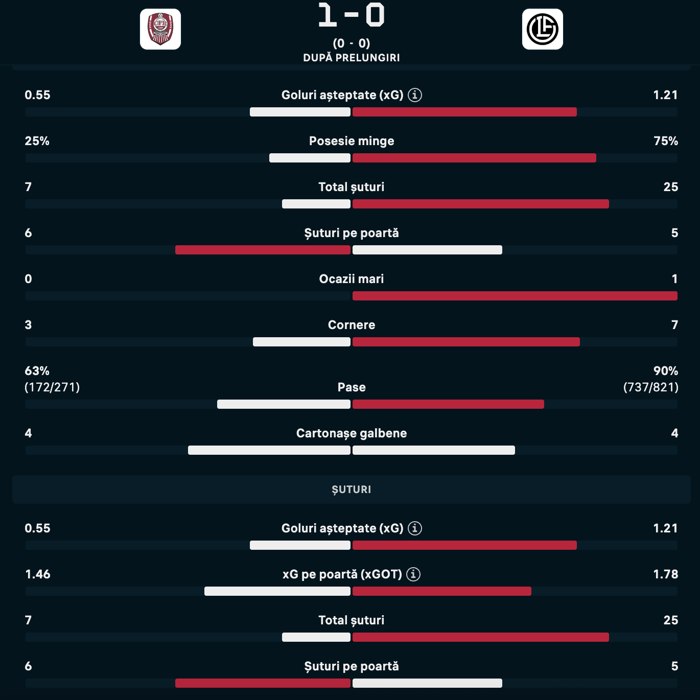 Macalou a vrut, dar nu a putut în minutul 61, apoi a venit încercarea lui Nistor de a nimeri poarta de la niște zeci de metri. Nici măcar tripla modificare pe care a făcut-o antrenorul ardelenilor n-a mai contat, iar meciul s-a dus în prelungiri. Parcă din ce în ce mai pierduți, clujenii au dat totuși startul ocaziilor cu șutul lui Simion din minutul 95, apoi Chipciu a început să arunce mingi cu nemiluita în careul armenilor, doar că fără o țintă precisă. Șepcile roșii au continuat să împingă jocul către poarta oaspeților, dar nici lovitura de cap a lui Trică n-a intrat. Și când toată lumea aștepta momentul loviturilor de departajare, s-a prăvălit tot cerul Sibiului peste clujeni. Paul Ayongo a dat lovitura în minutul 117 iar oamenii lui Sabău ies din Europa după doar două meciuri. Acum, dacă te-a scos Shkendija, ce mai contează o altă umilință împotriva unei alte echipe umile.